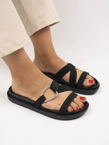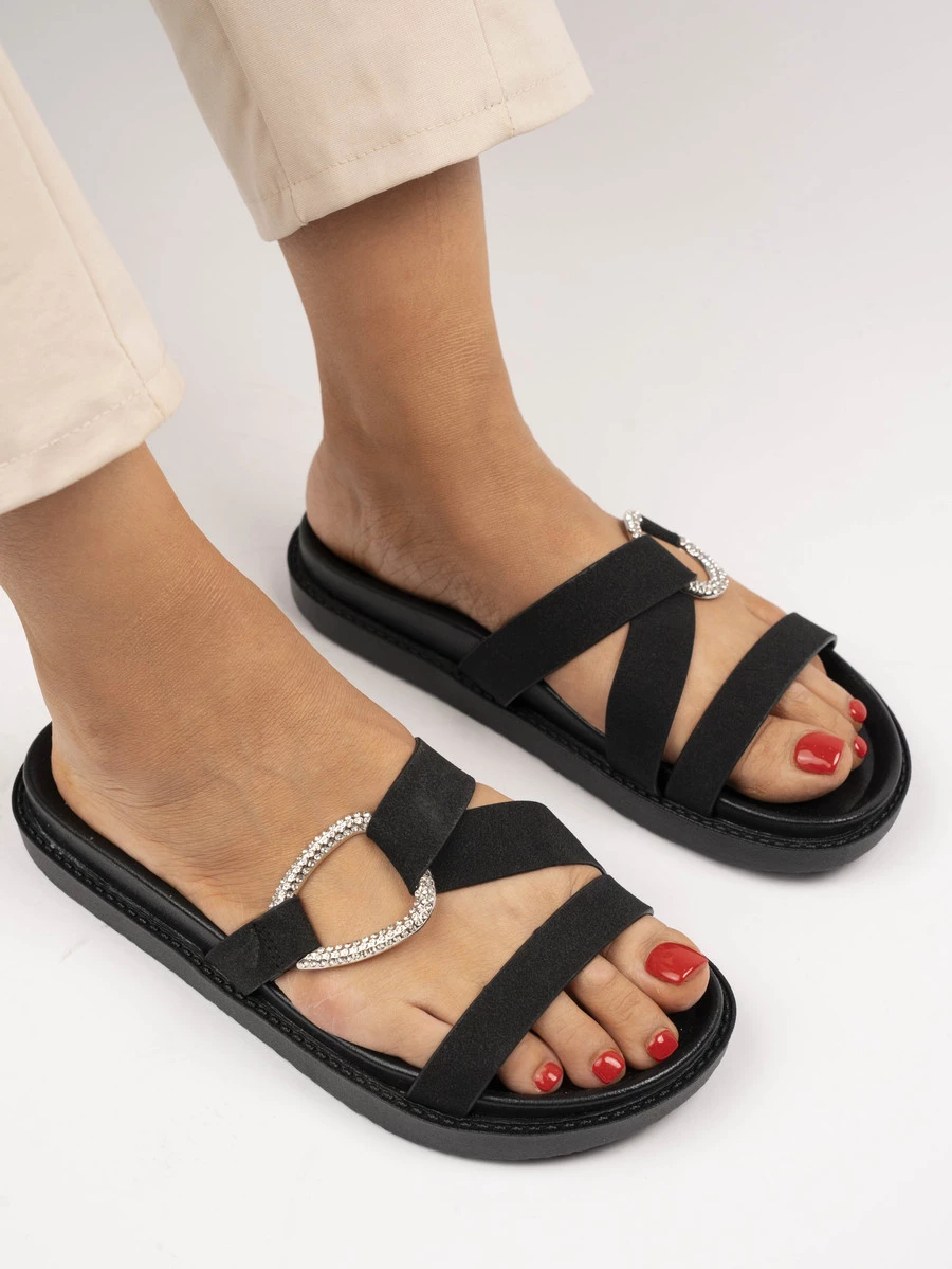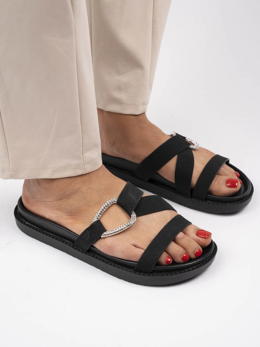 Klapki damskie z ozdobną klamrą i szerokimi paskami Black