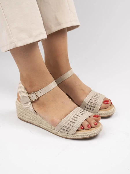 Te eleganckie sandały na koturnie w kolorze Beige to idealny wybór na letnie dni. Wykonane z plecionego materiału, oferują wyjątkowy komfort i styl. Regulowany pasek zapewnia idealne dopasowanie do stopy, a koturn z plecionej juty dodaje nie tylko kilku centymetrów wzrostu, ale i nowoczesnego charakteru. Idealne na spacer po mieście lub wieczorne wyjście, dodadzą każdej stylizacji lekkości i elegancji.