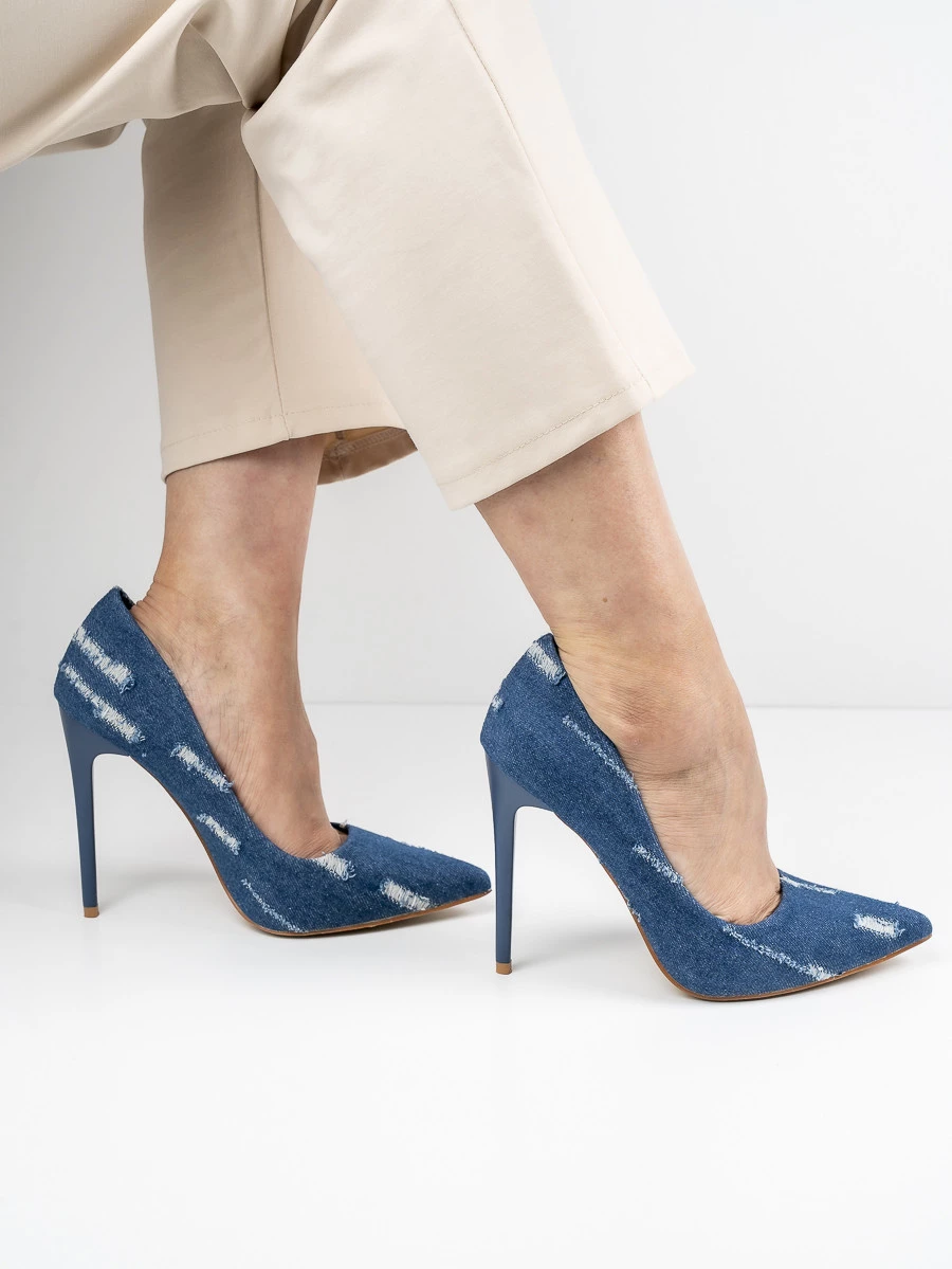 Te stylowe szpilki Denim-123 Dk to doskonały wybór dla kobiet ceniących sobie niebanalny styl. Wykonane z materiału dżinsowego z efektownym, przetartym wzorem dodają charakteru każdej stylizacji. Wysoki obcas typu szpilka podkreśla sylwetkę i dodaje elegancji. Idealne zarówno do codziennych, jak i wieczorowych zestawień. Kolor Dk dodatkowo wzbogaca ich unikalny wygląd, sprawiając, że stają się wyjątkowym elementem garderoby.