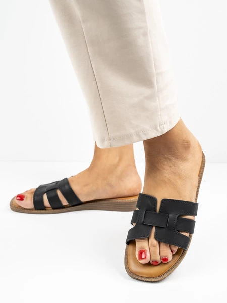 Klapki AZ-123 Black to idealne rozwiązanie na ciepłe dni. Wykonane z wysokiej jakości skóry, zapewniają komfort i trwałość przez cały dzień. Płaska podeszwa zapewnia wygodę, a przewiewny design pozwala stopom oddychać. Ich klasyczny, czarny kolor sprawia, że doskonale komponują się z każdą letnią stylizacją, od casualowych po bardziej eleganckie. To must-have w garderobie każdej kobiety ceniącej styl i komfort latem.