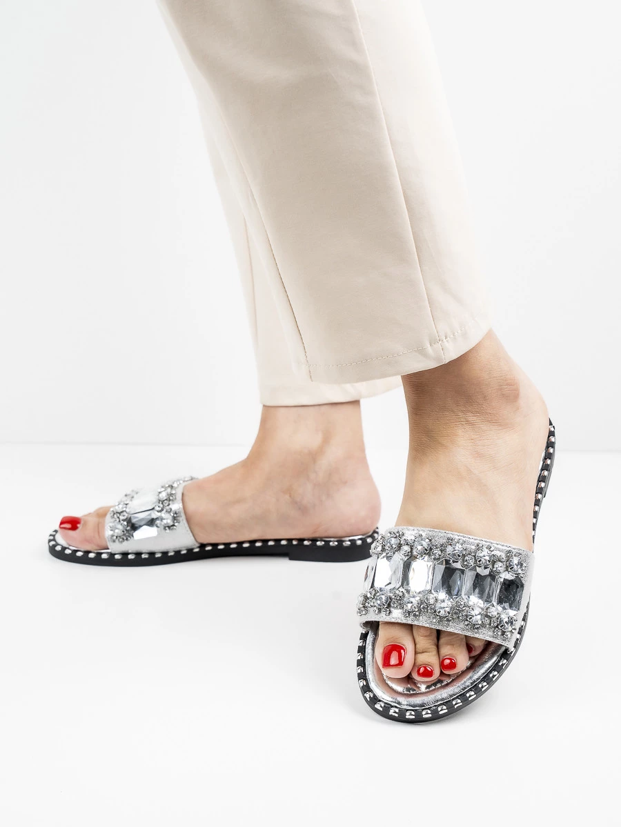 • Modne Klapki damskie w kolorze Silver.