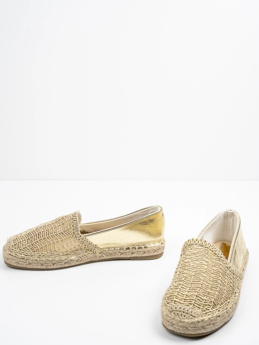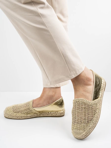 Espadryle MESH-ESP Gold to połączenie stylu i komfortu, idealne na letnie dni. Charakteryzują się plecioną cholewką, która zapewnia przewiewność i lekkość. Skórzany złoty zapiętek dodaje elegancji i modnego wyglądu. Płaska podeszwa gwarantuje wygodę podczas długiego noszenia, idealna na spacer po mieście czy plaży. Te espadryle w kolorze Gold z łatwością dopasujesz do letniej garderoby, dodając jej blasku i szyku. Perfekcyjny wybór dla osób ceniących sobie komfort połączony z nowoczesnym stylem.