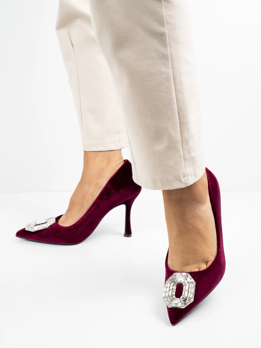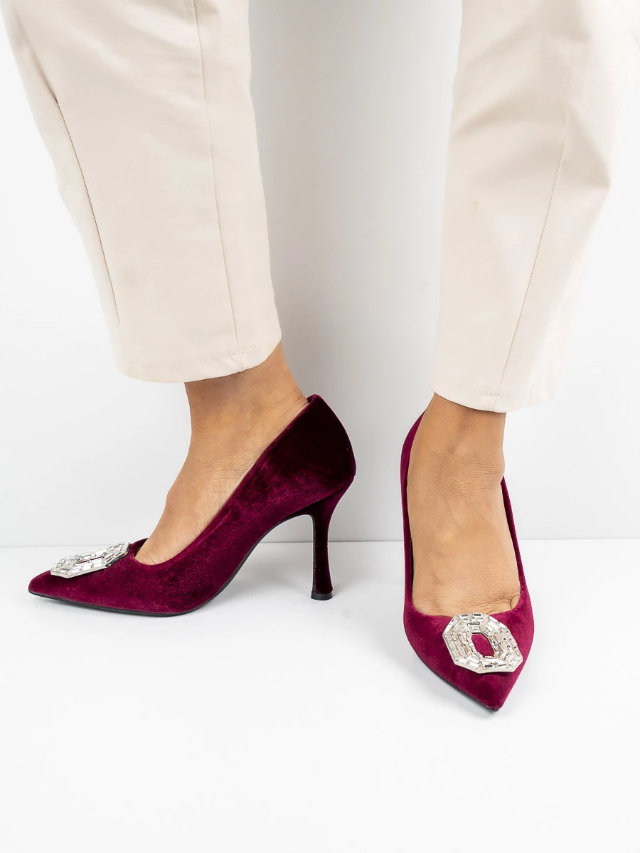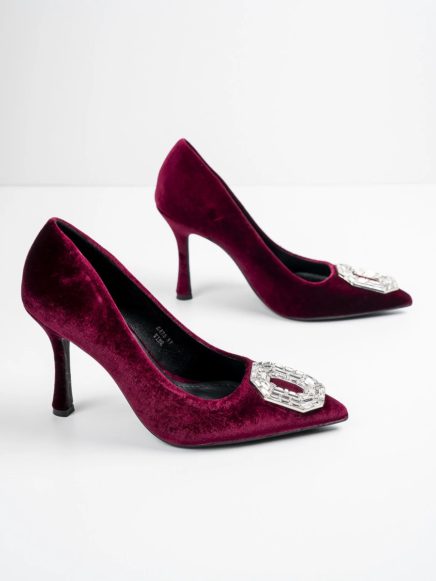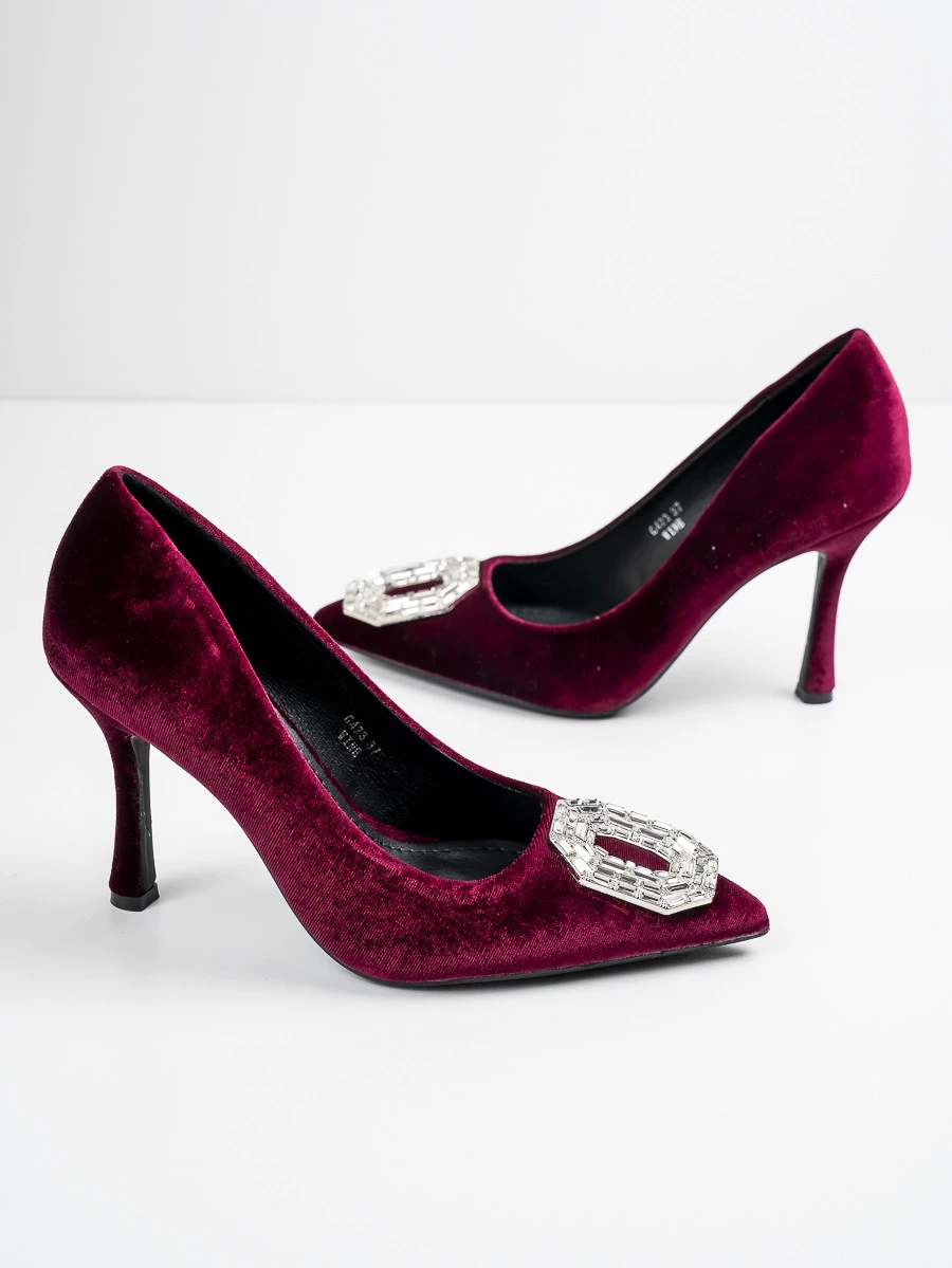 Odkryj elegancję i szyk z szpilkami Glamour-01 Wine, które doskonale uzupełnią każdą stylizację. Wykonane z luksusowej welurowej tkaniny, te buty oferują nie tylko wygląd, ale także komfort noszenia. Ozdobna klamra na przodzie dodaje wyrafinowania i podkreśla ich wyjątkowy charakter. Cienka szpilka zapewnia elegancki wygląd i dodatkowo wysmukla sylwetkę. Idealne na wieczorne wyjścia, te szpilki w kolorze Wine staną się Twoim ulubionym wyborem na specjalne okazje. Niech glamour i styl staną się Twoimi codziennymi towarzyszami dzięki tym niezwykłym butom.