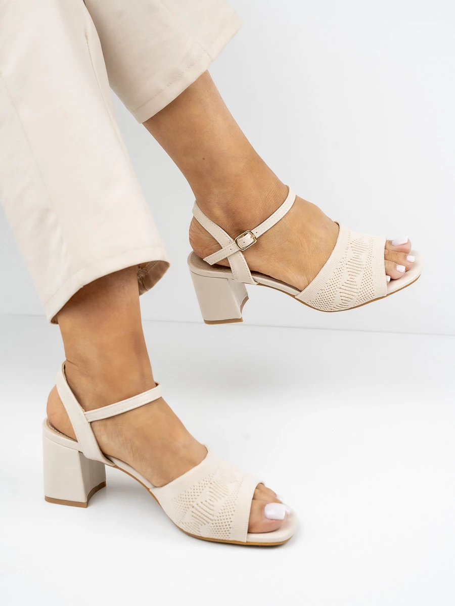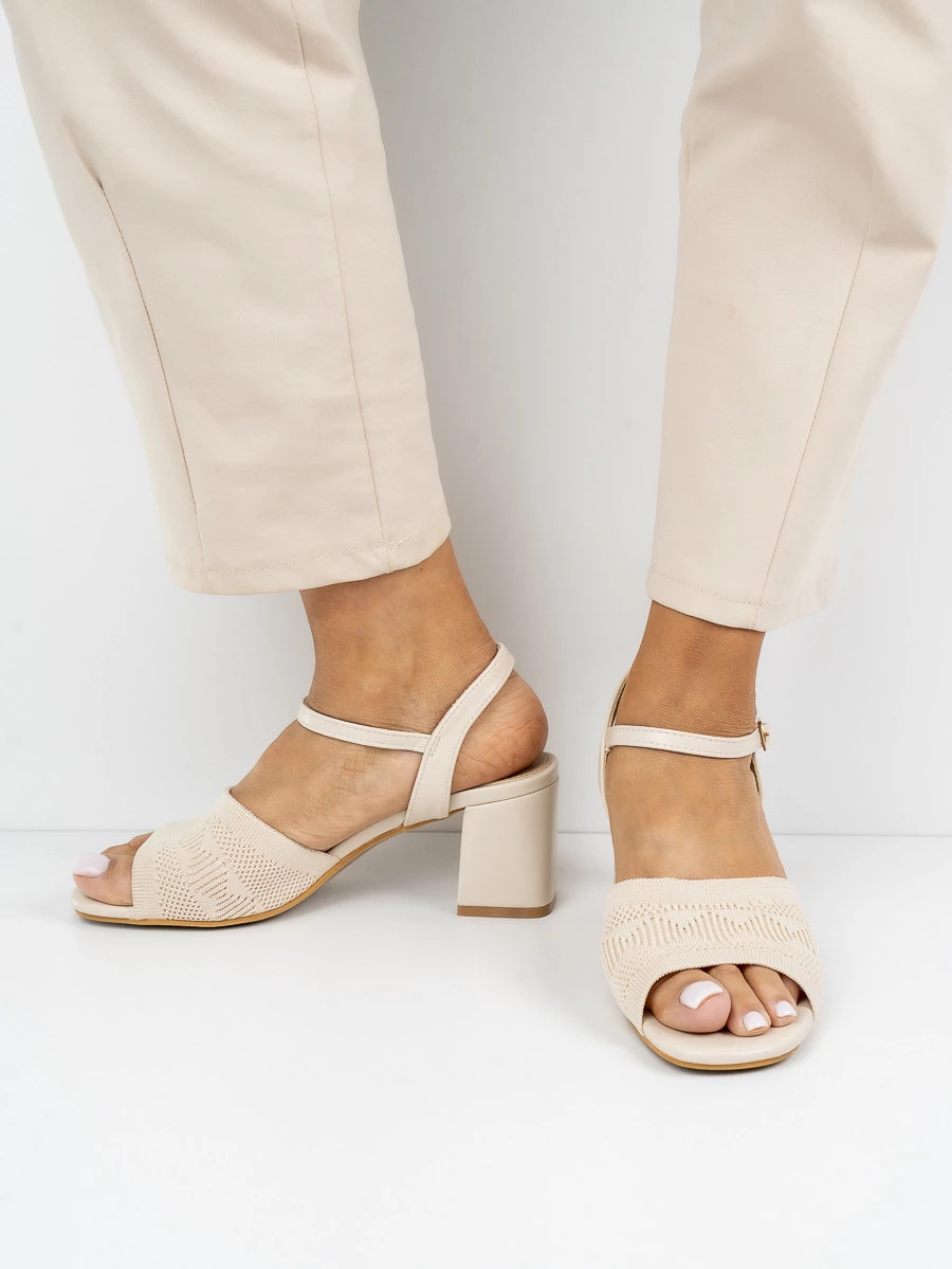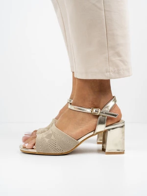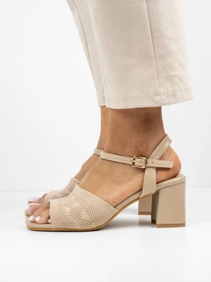 Te eleganckie sandały na obcasie cechują się wyjątkowym ażurowym wzorem na przedniej części. Zapewniają wygodę noszenia dzięki stabilnemu obcasowi i regulowanemu zapięciu. Idealne na letnie wieczory, dodają szyku każdej stylizacji. W kolorze Beige, doskonale komponują się z różnymi odcieniami garderoby.