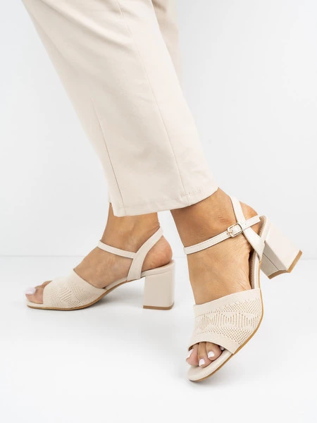 Opinie o Sandały na obcasie z ażurowym wzorem w kolorze Beige