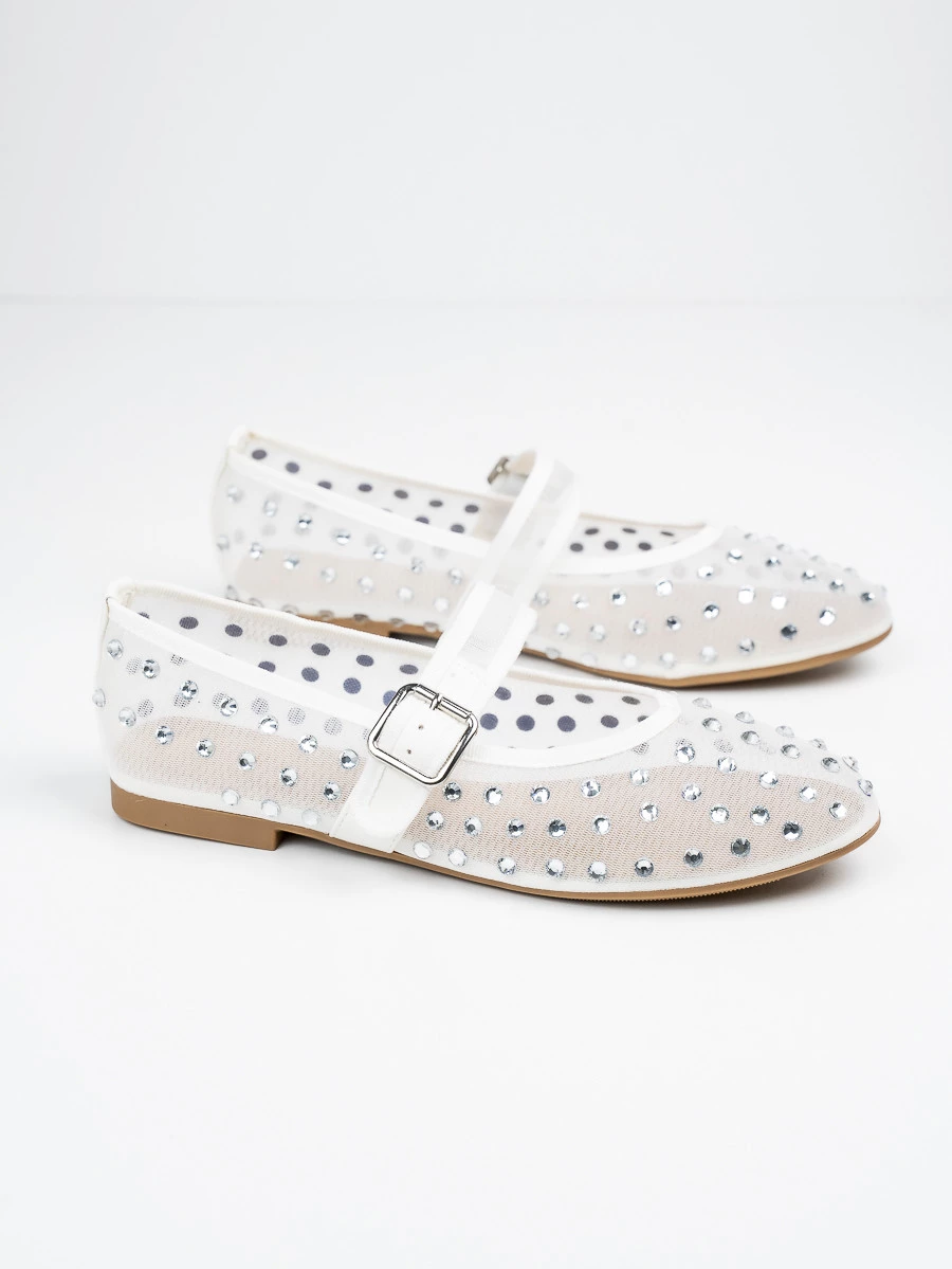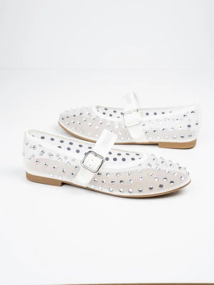 Baleriny damskie z cyrkoniami i paskiem w kolorze White