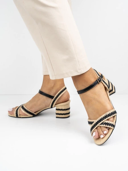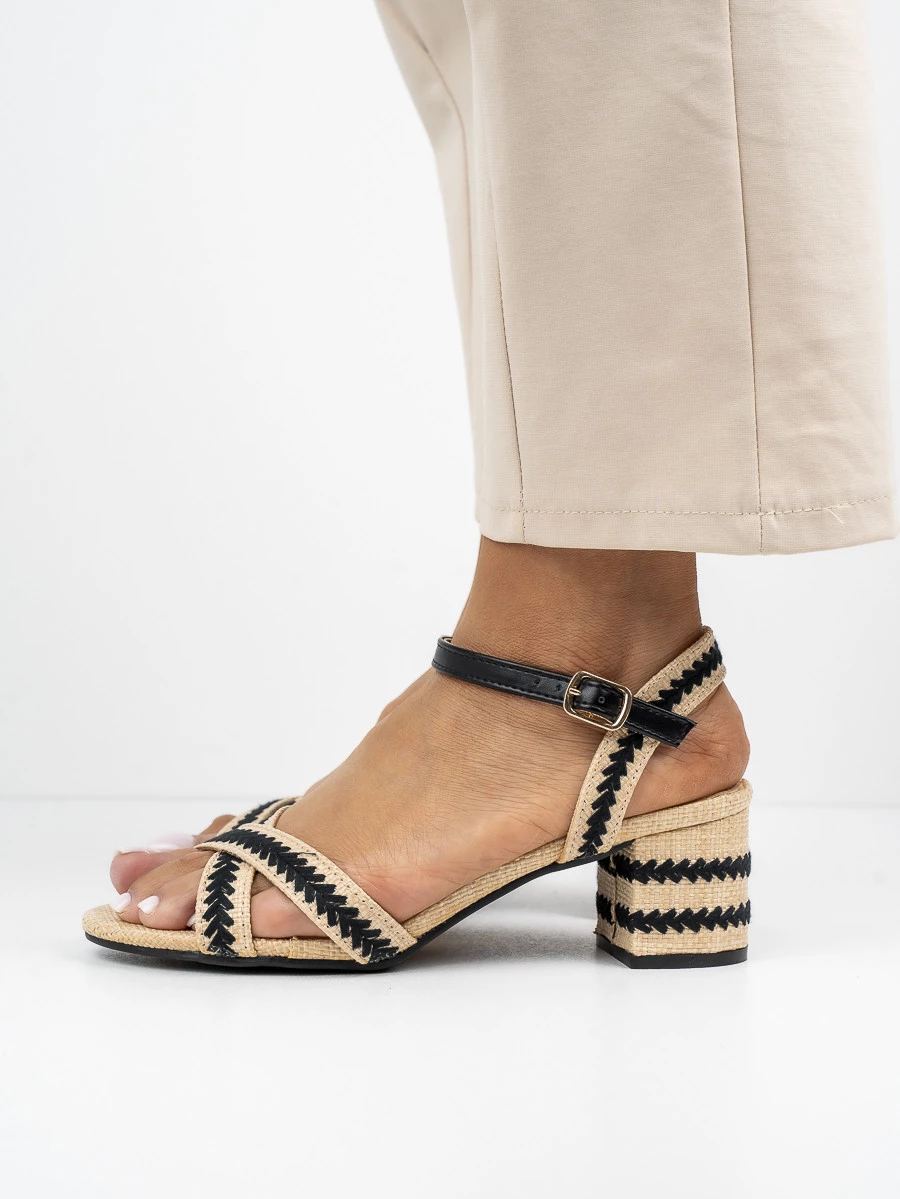 Te eleganckie sandały na obcasie z paskami i plecionym wzorem w kolorze Black łączą styl i komfort. Idealne na ciepłe dni, dodadzą każdej stylizacji wyjątkowego charakteru.