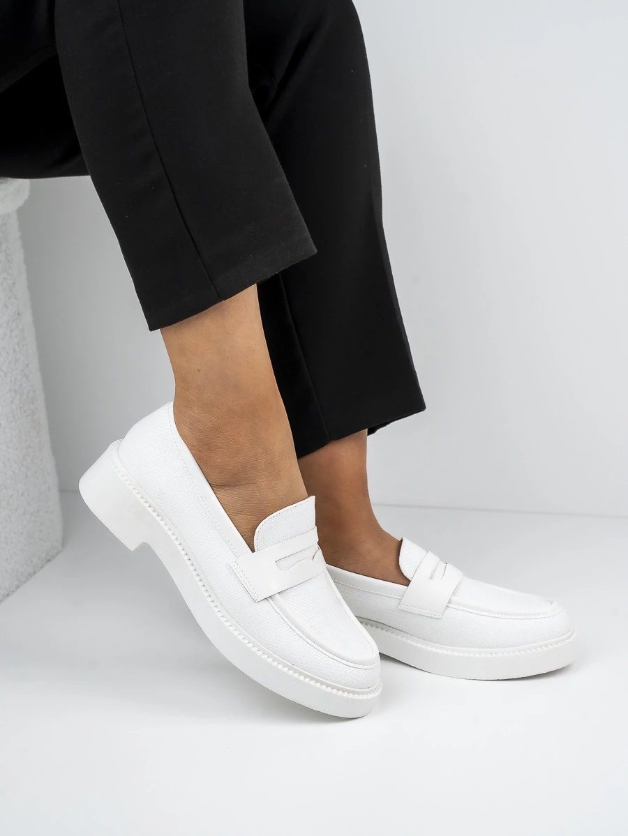 Te białe mokasyny damskie to połączenie stylu i komfortu. Idealne na co dzień, posiadają klasyczną linię i subtelne wykończenia, które dodają elegancji. Ich lekka konstrukcja zapewnia wygodę noszenia przez cały dzień. Biały kolor sprawia, że są uniwersalne i łatwe do dopasowania do różnych stylizacji w kolorze White.