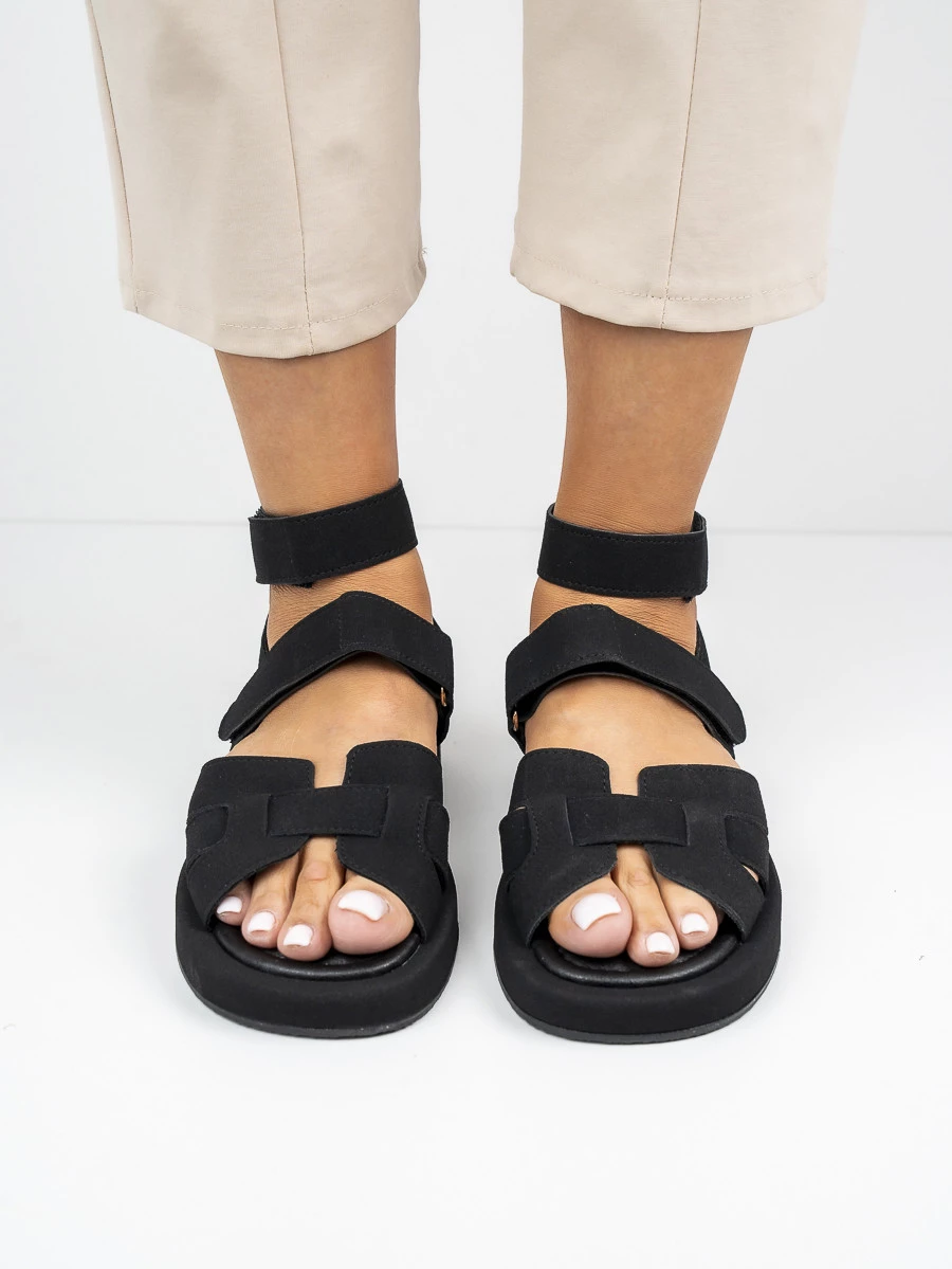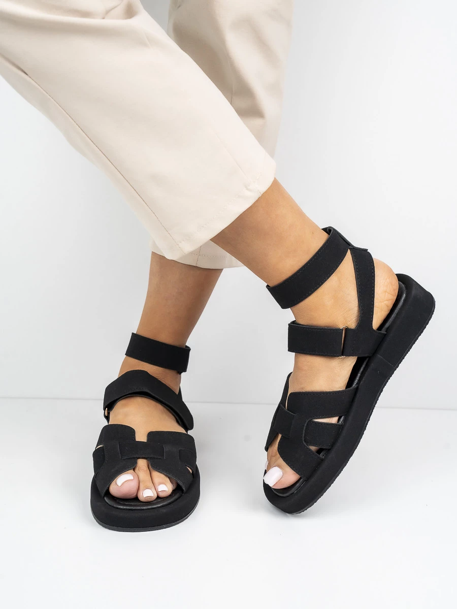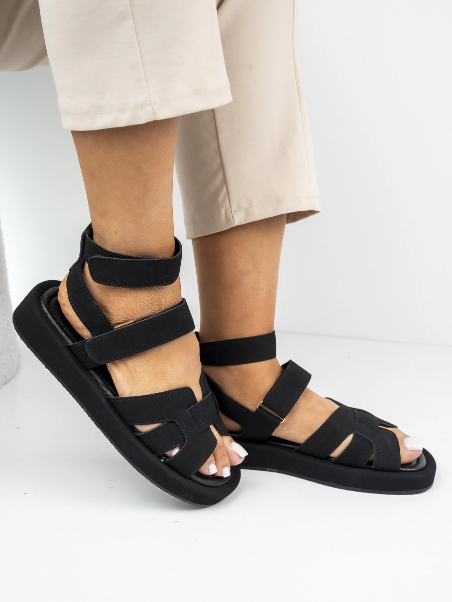 Czarne sandały płaskie damskie z komfortowymi paskami to idealny wybór na ciepłe dni. Wykonane z wysokiej jakości materiałów, zapewniają wygodę i styl. Eleganckie zapięcia na rzepy ułatwiają zakładanie i idealne dopasowanie do stopy. Doskonałe do casualowych stylizacji na co dzień w kolorze Black.