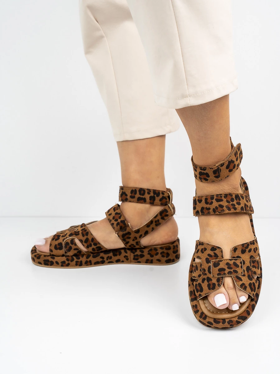 Te sandały damskie na płaskiej podeszwie to doskonały wybór na letnie dni. Wyróżniają się modnym wzorem Leopard, który doda charakteru każdej stylizacji. Zapięcia na rzepy zapewniają łatwość w zakładaniu i dostosowanie do stopy.