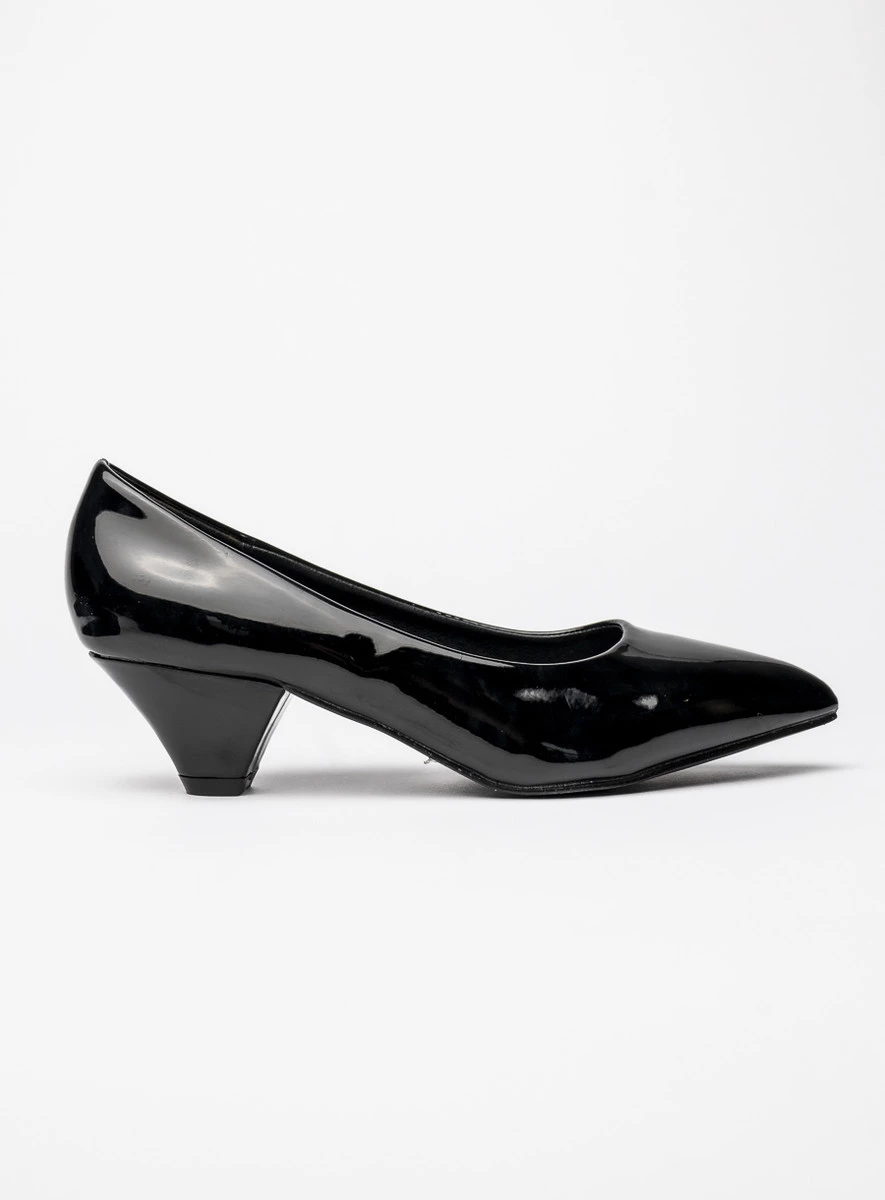 Eleganckie Lakierowane czółenka na niskim obcasie BLACK